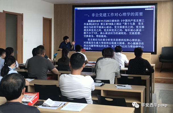 郇院長(zhǎng)以“非公企業(yè)黨建工作中的心理學(xué)應(yīng)用”為主題,通過(guò)理論講解、剖析典型個(gè)案,深入淺出地介紹了為什么非公企業(yè)黨建工作需要心理學(xué)、當(dāng)前的研究及應(yīng)用以及如何進(jìn)行心理評(píng)估和疏導(dǎo),幫助非公企業(yè)黨員應(yīng)對(duì)壓力,科學(xué)調(diào)適心理,為其有效化解壓力、塑造陽(yáng)光心態(tài)開(kāi)出多劑良方。
