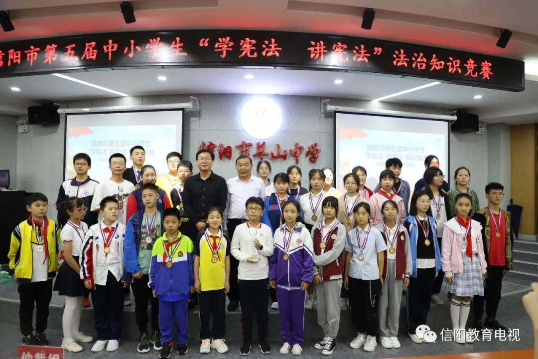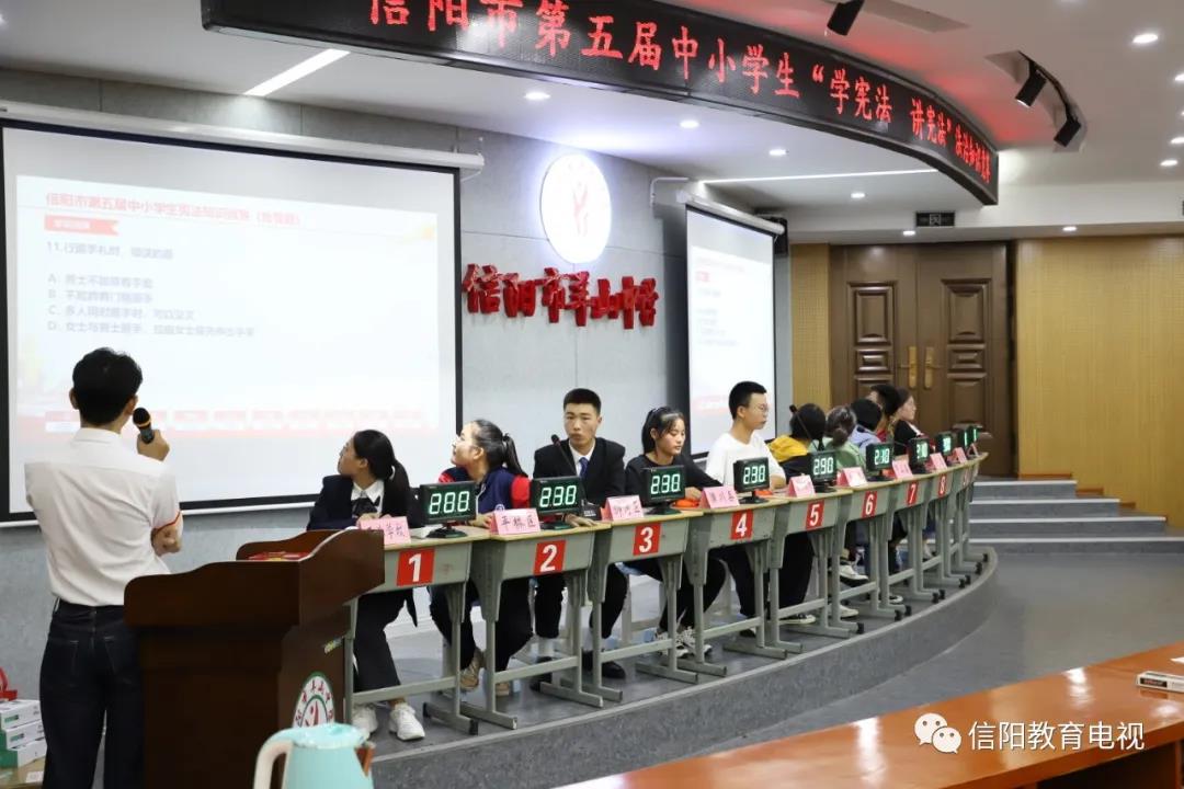 學(xué)習(xí)憲法知識(shí),弘揚(yáng)憲法精神,樹(shù)立憲法權(quán)威,9月22日,由信陽(yáng)市法學(xué)會(huì)聯(lián)合信陽(yáng)市教育體育局、信陽(yáng)市普法辦、信陽(yáng)市教育電視臺(tái)共同籌備和組織的信陽(yáng)市第五屆中小學(xué)生“學(xué)憲法 講憲法”活動(dòng)正式啟動(dòng)。信陽(yáng)市教體局黨組成員、副局長(zhǎng)高君行,信陽(yáng)市教體局調(diào)研員何厚謙,市法學(xué)會(huì)、市普法辦有關(guān)負(fù)責(zé)同志分別出席活動(dòng)。