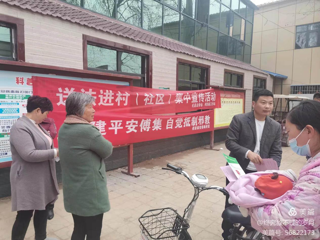 活動中,普法志愿者運用典型案例,重點講解了憲法、婚姻法、繼承法、農(nóng)村土地承包法等與廣大群眾日常生產(chǎn)生活密切相關(guān)的法律法規(guī)知識。廣大村民深刻認識到在全面依法治國已步入快車道、中國特色社會主義進入新時代的背景下尊法學法守法用法的必要性、緊迫性和重要性,很受教育和啟發(fā),期間還進行了反邪教宣傳,工作人員還向群眾講解了什么是邪教,怎么區(qū)分邪教并向群眾說明邪教的危害。