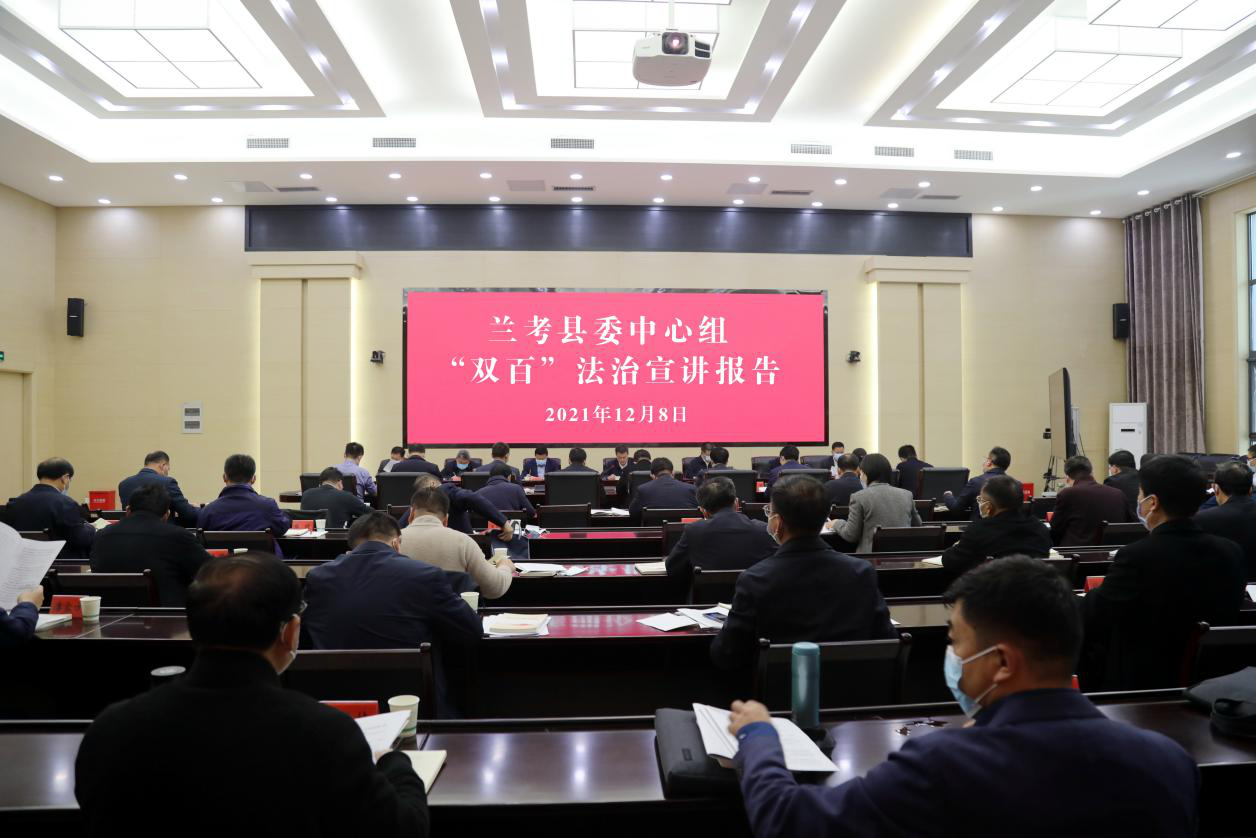 12月8日,蘭考縣法學(xué)會舉辦“雙百”活動進(jìn)縣委理論學(xué)習(xí)中心組集中學(xué)習(xí)專題報告會,中共蘭考縣委黨校副校長、高級講師、焦裕祿干部學(xué)院特聘教師孔永善應(yīng)邀以“領(lǐng)導(dǎo)干部的法治思維及其運(yùn)用”為主題做專題報告。中心組成員50余人參加了會議,縣委書記李明俊出席會議并講話。