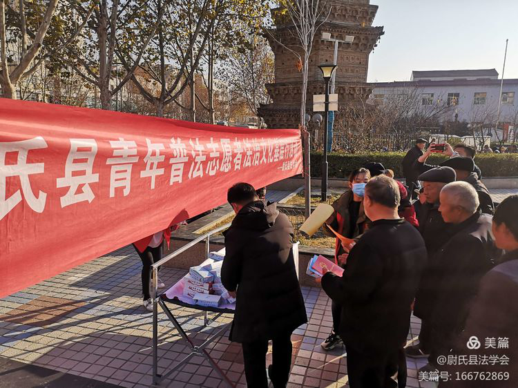 為進(jìn)一步加大普法宣傳力度,增強(qiáng)全縣群眾的法律意識(shí),提高廣大群眾安全感和滿意度。12月21日,尉氏縣法學(xué)會(huì)以“我為群眾辦實(shí)事”實(shí)踐活動(dòng)為契機(jī),以滿足群眾法律需求為出發(fā)點(diǎn),在尉氏縣古塔廣場(chǎng)開(kāi)展普法宣傳,讓法治理念深入人心。