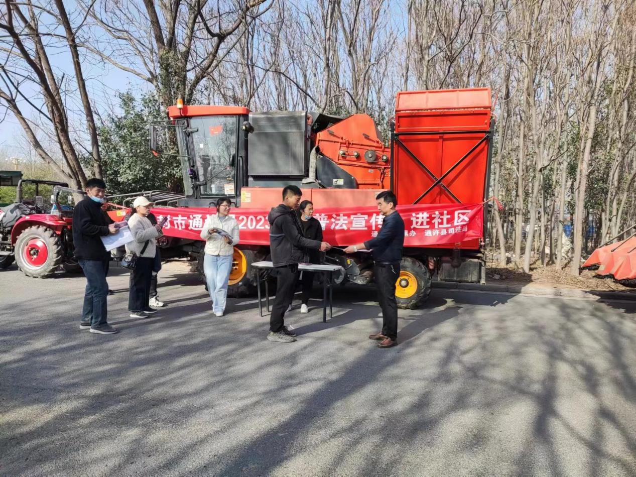 活動(dòng)中,普法宣傳員向轄區(qū)居民及一眾農(nóng)機(jī)手講述與生活息息相關(guān)的法條,運(yùn)用生動(dòng)鮮活的案例和幽默風(fēng)趣的言語解讀鄰里糾紛、婚姻家庭、財(cái)產(chǎn)保護(hù)、勞動(dòng)就業(yè)等法律常識(shí),重點(diǎn)針對(duì)現(xiàn)場(chǎng)農(nóng)機(jī)手人群講解了《道路交通安全法》等相關(guān)知識(shí)。志愿者還為居民發(fā)放了普法宣傳資料100余份,調(diào)動(dòng)居民了解學(xué)習(xí)法律的熱情,努力營(yíng)造濃厚的宣傳氛圍,全面提高居民法治素養(yǎng),建設(shè)法治通許。