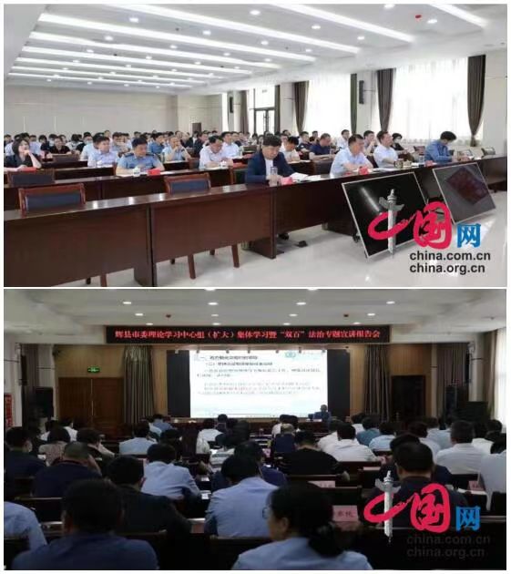5月23日,新鄉(xiāng)輝縣市舉行市委理論學(xué)習(xí)中心組(擴(kuò)大)集體學(xué)習(xí)暨“雙百”法治專題宣講報(bào)告會(huì)。市四大班子領(lǐng)導(dǎo),市委有關(guān)部委辦局、市直相關(guān)單位、各鄉(xiāng)鎮(zhèn)(街道)主要負(fù)責(zé)人等120余人參加。市委常委、副書記林慶立主持會(huì)議。