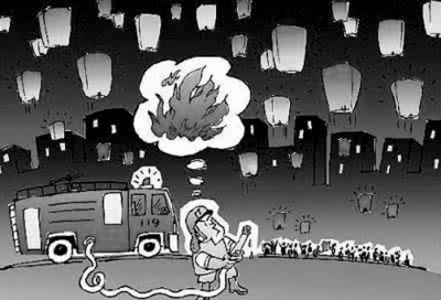 此外,燃放的孔明燈如果遭遇強(qiáng)風(fēng),燈罩被吹斜后可能會(huì)被底部的明火引燃,一旦掉落在草堆、樹林、加油站等地,非常容易引發(fā)火災(zāi)。城市上空布有各類供電、照明、通信線路,孔明燈燃放后飛向天空,有可能掛在各種線纜上,造成通信和供電設(shè)施故障。孔明燈可飛到近1000米的高空,一旦遭遇降落或起飛的飛機(jī),將危及飛機(jī)及乘客的安全。在人員密集區(qū)域燃放孔明燈,稍有不慎就會(huì)造成人員傷亡。