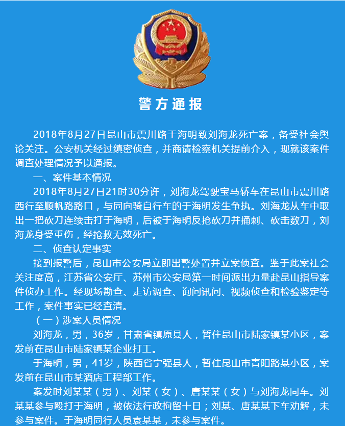 正當(dāng)防衛(wèi),撤銷案件!警方通報(bào)“昆山砍人案”