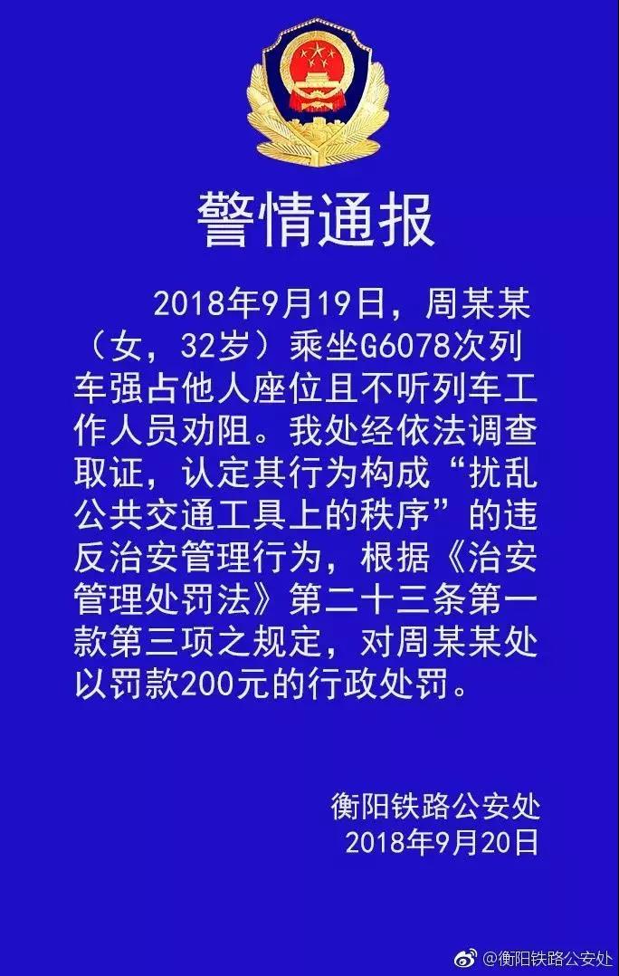 昨天,高鐵“霸座女”的視頻在網(wǎng)上刷屏。剛剛, 衡陽鐵路公安官方微博和 廣州鐵路官方微博公布了處罰決定和處置情況。