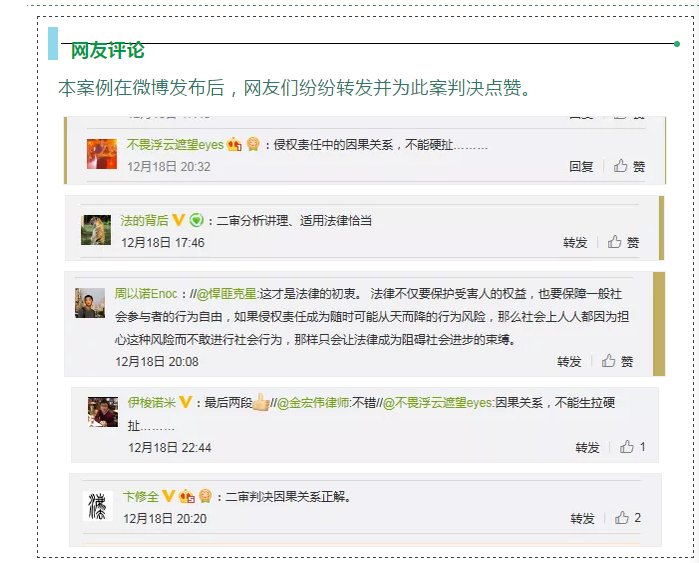 本案例在微博發(fā)布后,網(wǎng)友們紛紛轉(zhuǎn)發(fā)并為此案判決點(diǎn)贊。