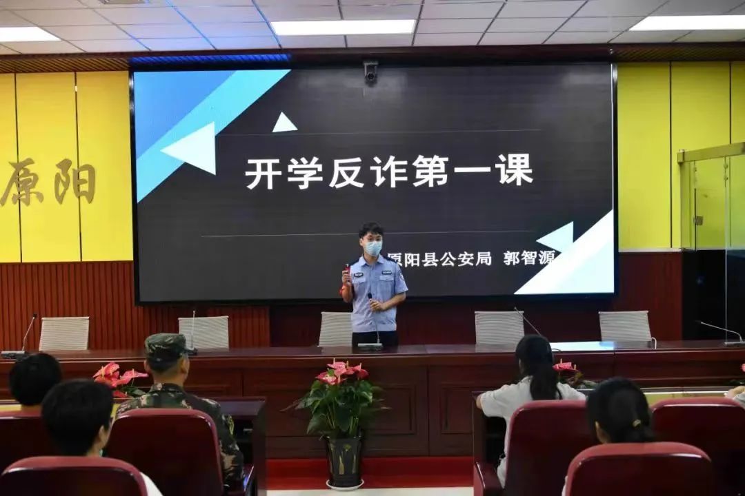 9月19日,原陽(yáng)縣法學(xué)會(huì)組織青年普法志愿者入校開(kāi)展“反詐第一課”。
