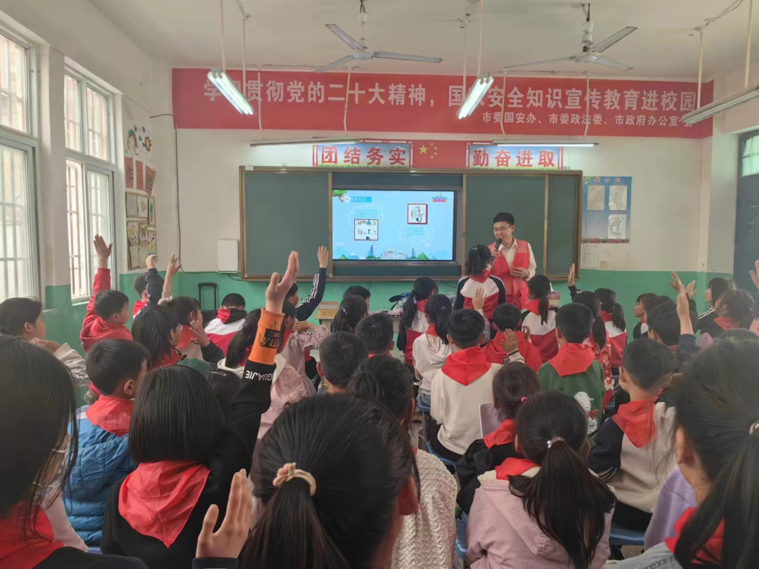 4月11日,周口市委國安辦、市委政法委、市政府辦公室聯(lián)合市法學(xué)會駐村第一書記普法志愿者宣傳團(tuán)走進(jìn)淮陽區(qū)齊老鄉(xiāng)柳南小學(xué),開展4.15全民國家安全主題教育活動。
