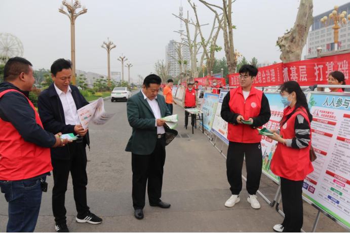 活動中,各單位志愿者通過展出宣傳版面、懸掛宣傳橫幅、張貼宣傳標(biāo)語、設(shè)置法律咨詢臺、發(fā)放宣傳資料等形式,重點圍繞黨的二十大精神、政法工作會議主要內(nèi)容精神、憲法、民法典、掃黑除惡、“三零”創(chuàng)建、《漯河市社會治安綜合治理領(lǐng)導(dǎo)責(zé)任制實施辦法》、預(yù)防化解矛盾糾紛、預(yù)防未成年人溺水、防范和打擊電信網(wǎng)絡(luò)詐騙和養(yǎng)老詐騙等“平安建設(shè)”有關(guān)內(nèi)容和經(jīng)驗措施,以及相關(guān)法律法規(guī)向過往群眾進行宣傳,耐心解答群眾現(xiàn)場提出的問題,引導(dǎo)群眾自覺“學(xué)法、知法、用法、守法”,在預(yù)防各類違法犯罪行為的同時,能夠攜手共同努力,主動消除安全隱患,積極投身到平安建設(shè)的隊伍中來。