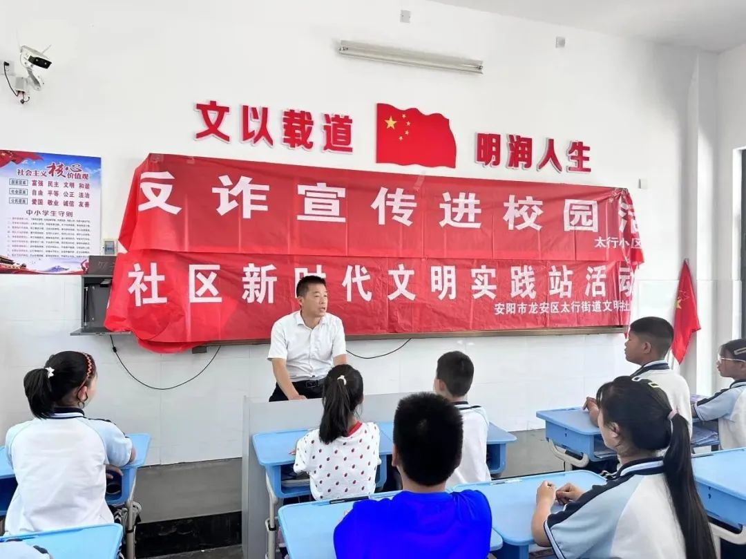 6月6日,安陽市龍安區(qū)法學會太行小區(qū)街道辦事處法律服務站開展“反詐宣傳進校園 護航青春助成長”主題宣傳活動。