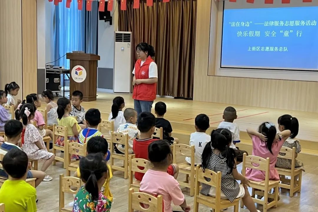近日,鄭州市上街區(qū)法學會組織青年普法志愿者來到上街區(qū)正陽門幼兒園,開展“護‘未’暑期安全 關(guān)愛一路同行”主題教育活動。
